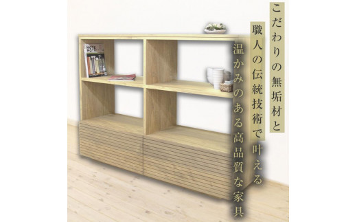 - 【大川家具】無垢材 リビングシェルフ シェルフ 本棚 収納家具 収納 風雅 幅1500 ホワイトオーク 天然木 北欧 国産 完成品【設置付き】