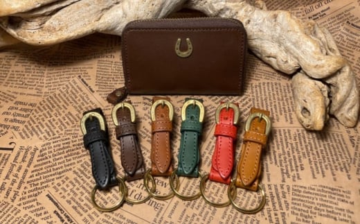 蹄鉄ラウンドファスナーコインケース(ダークブラウン)&蹄鉄バックルキーリング(ブラック) 栗東市 / 株式会社ブルズエフ [BIAU333]