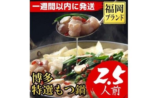 【1週間以内に発送!】福岡ブランド 博多特選もつ鍋(プリプリの国産牛小腸のみ使用 2.5人前・醤油味)