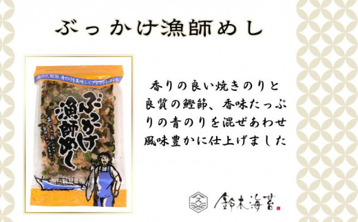 - ふりかけ 4袋セット ぶっかけ漁師めし 海苔 のり 焼きのり 鰹節 かつおぶし 青のり とろろ昆布 昆布 おすすめ 人気 ご飯 白米 おにぎり 米 こめ 豆腐 ラーメン うどん パスタ お蕎麦 そば そうめん お好み焼き サラダ 食品 海藻 贈答 プレゼント 手土産 スピード発送 送料無料 千葉県 銚子市 銚子名産 10000円 10,000円 鈴木海苔