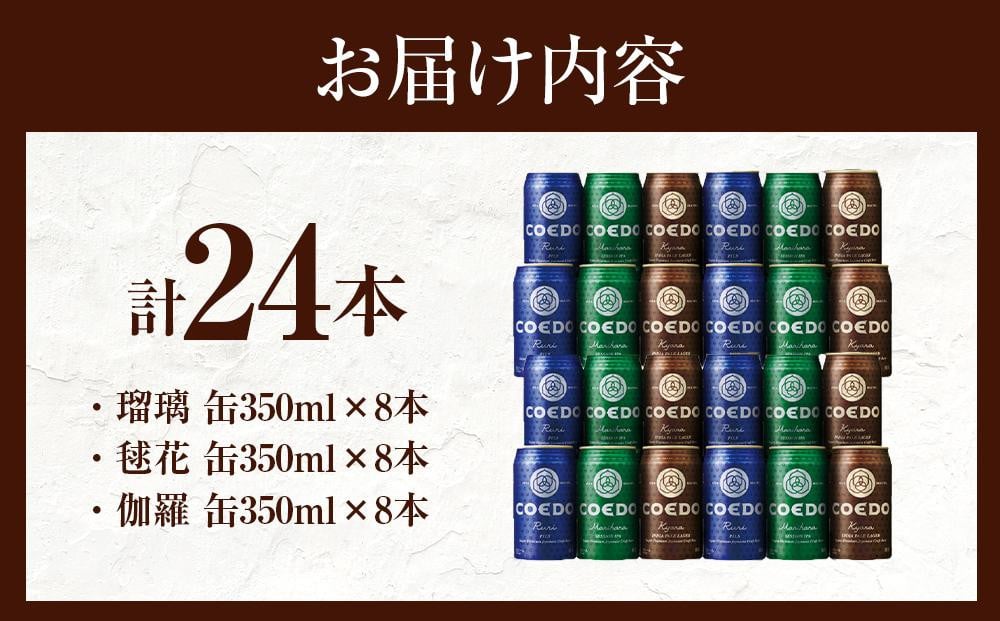 - No.602 コエドビール COEDOカジュアルセット(瑠璃、毬花、伽羅24本入り) / お酒 地ビール クラフトビール 埼玉県