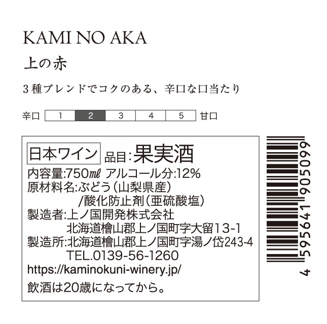 - 上ノ国ワイナリーの赤ワイン「上の赤」 750ml×1本