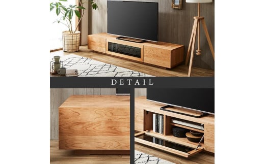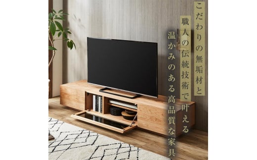 - 【大川家具】無垢材 テレビボード ローボード テレビ台 TV台 凛 幅1800 ブラックチェリー ナチュラル インテリア 収納 国産 日本製 完成品 組み立て不要 高級感 北欧【設置付き】