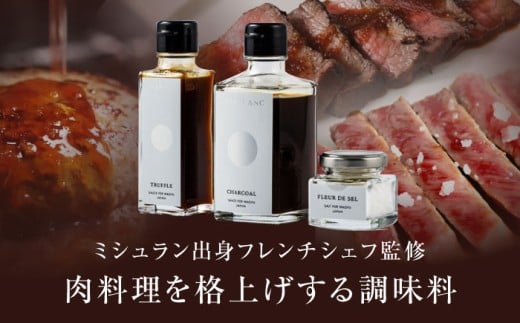 - 【ギフトBOX】《ミシュラン出身シェフ監修!》肉屋が作った和牛をさらに美味しく食べるための調味料3点セット 肉 牛 赤身 A5 ステーキ ソース 塩 トリュフ 大阪府高槻市/株式会社MARBLANC[AOAS023]