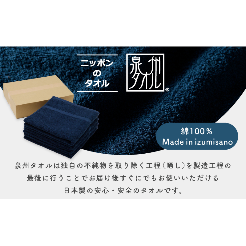 - 濃色カラー バスタオル 4枚(ネイビー) 【泉州タオル 国産 吸水 普段使い シンプル 日用品 家族 ファミリー】 015B497