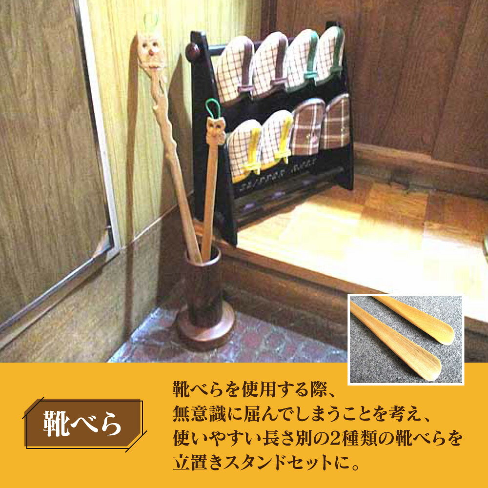 【ふるさと納税】【ギフト用】木彫りふくろう ロング&ショートくつべらスタンドセット_01407 | くつべら スタンド シューズ 小物 セット 工芸品 木 木製 旭川市ふるさと納税 北海道ふるさと納税