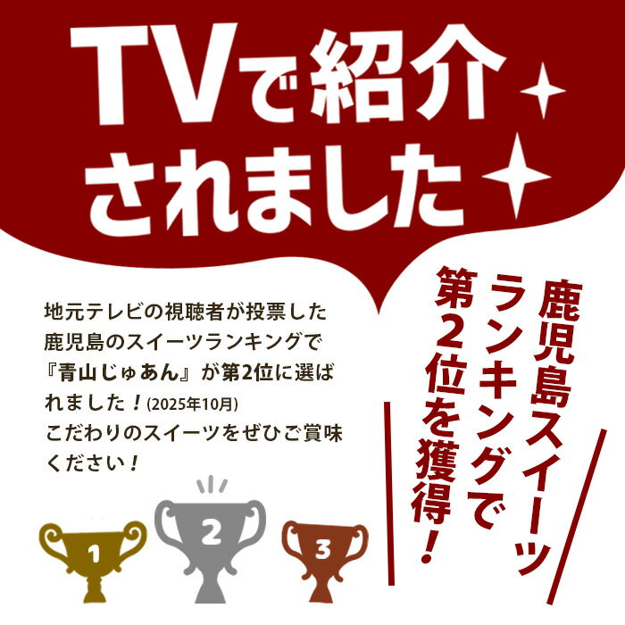 青山じゅあんのオリジナルアソートセットがもらえます。セットには、パリの芋娘、薩摩栗娘、薩摩芋伯爵、薩摩写楽の4種類が合計12個入っています。これらの焼菓子は、鹿児島の特産品を使用し、地元の風味を存分に楽しめる逸品です。卵、乳、小麦を使用しており、アレルギーのある方はご注意ください。常温で28日程度保存可能なので、贈り物や自分へのご褒美にぴったりです。鹿児島の魅力を感じるスイーツをぜひお試しください。