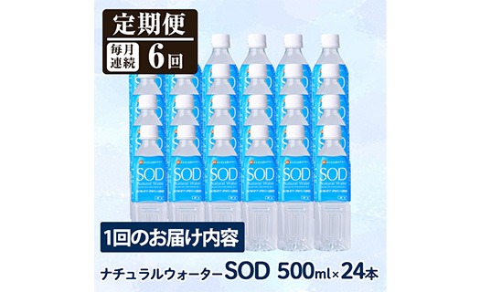<定期便・全6回(毎月)>ナチュラル ウォーター SOD 500ml (総量144本・500ml×24本×6回) 定期便 国産 鉱泉水 お水 ミネラル ドリンク 大自然 天然 料理 健康 維持 防災 常温 保存 6回【HD246】【さいき本舗 城下堂】