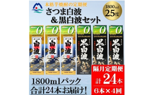 - <2ヵ月毎定期便>さつま白波&黒白波 1800ml×各3パックセット JJ15-0008 全4回【4069200】