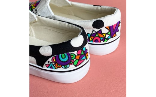 手描きスニーカー「ジャズ」22.5cm 水玉模様 アシンメトリー【受注制作】