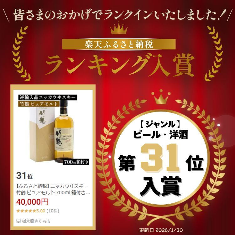 - 【ふるさと納税】 ニッカウヰスキー 竹鶴 ピュアモルト 700ml 箱付き 逆輸入品 | 栃木県 さくら市 熟成 ニッカ ウィスキー お酒 酒 ハイボール 国産 洋酒 ウイスキー Japanese whisky プレゼント ギフト 贈り物 贈答 ウイスキーギフト 晩酌 ロック ハイボール 家飲み