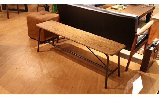 - オーク無垢材のアイアンベンチ(木部:ダークブラウン/フレーム:艶消し黒ウレタン塗装)
