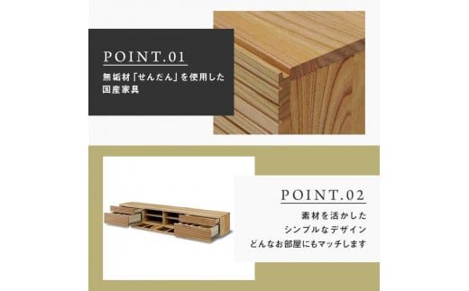 【大川家具】無垢材 テレビボード ローボード テレビ台 TV台 風雅type2 幅2400 センダン SENDAN ナチュラル インテリア 収納 国産 完成品 組み立て不要 高級感 北欧【設置付き】