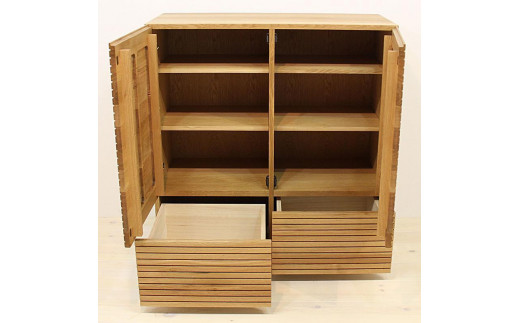 - 【大川家具】無垢材 サイドキャビネット キャビネット サイドボード 本棚 収納家具 収納キャビネット 風雅 幅980 ホワイトオーク 扉付き収納 可動棚 天然木 北欧 国産 高級感 【設置付き】