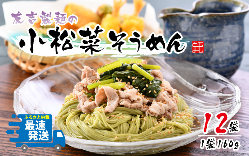 - 友吉製麺の小松菜そうめん(乾麺) 160g × 12袋 [B-4402]