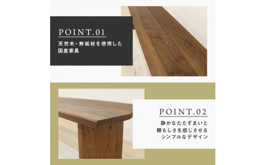 - 【大川家具】無垢材 ベンチ ダイニングベンチ チェア ダイニングチェア 凛 type1 幅1800 ウォールナット 2人掛け 3人掛け 天然木 国産 日本製 無垢材 完成品 組み立て不要 高級感