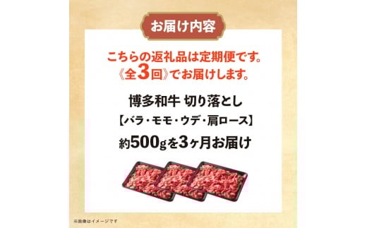 博多和牛 切り落とし 定期便全3回 計約1.5kg(約500g×3回)