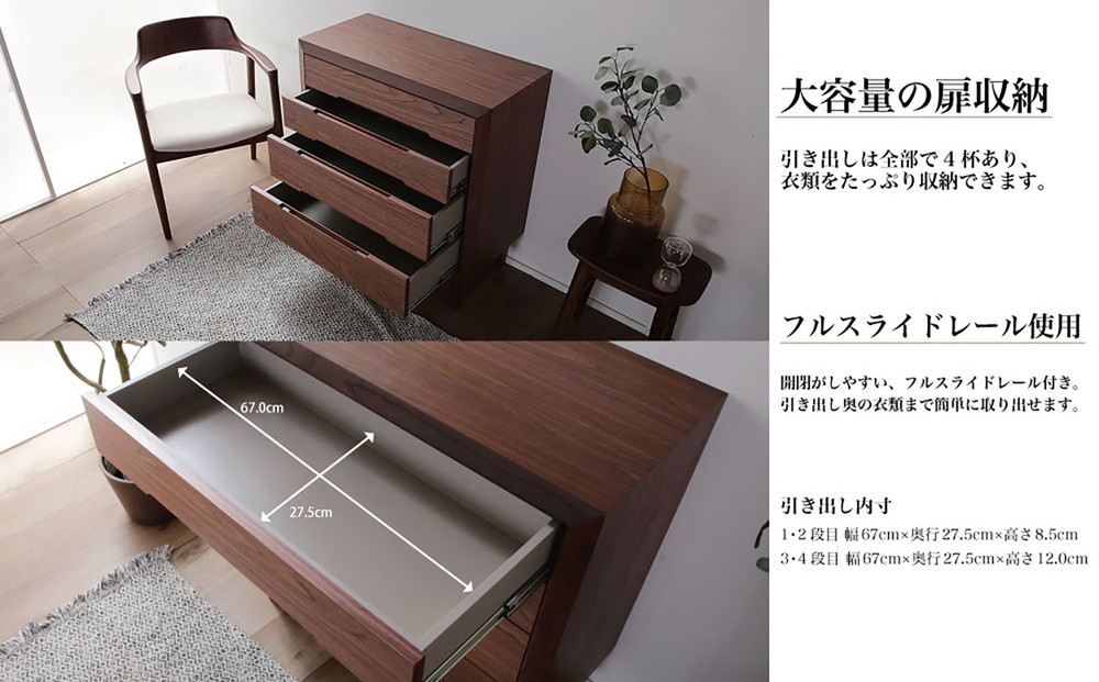 - 【OPERA2/オペラ2 80チェスト ウォールナット】★創業明治40年老舗「境木工」の職人技が輝く 100年を超える大川の老舗箪笥メーカーの職人が創り出す、天然木のアート作品のようなチェスト