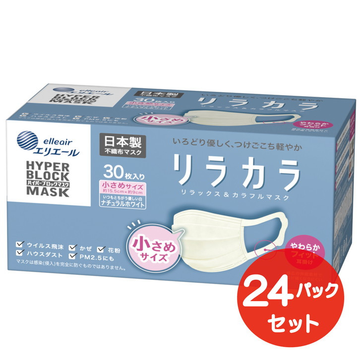 - エリエール ハイパーブロックマスク リラカラ ナチュラルホワイト 小さめサイズ 30枚(24パック)|大人用 個包装 ウイルス飛沫 かぜ 花粉 ハウスダスト PM2.5 まとめ買い
