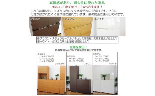 - 【ホワイト】高級素材仕様 シューズボックス 幅60 ハイタイプ