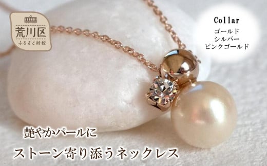 - 艶やかパールにストーン寄り添うネックレス(カラー:ゴールド)【043-020-1】
