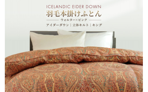アイダー 羽毛布団 キング 掛け [ウォルター・ピンク]アイスランド アイダーダック ダウン95% 【富士新幸 花巻工房】 【1600】