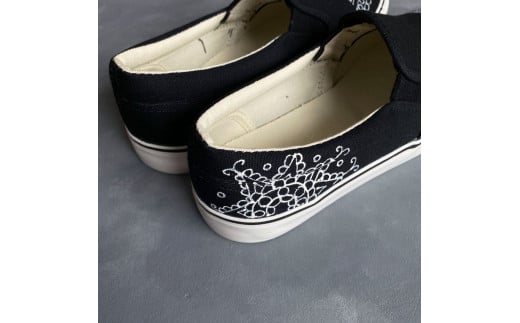 手描きスニーカー「ミュルクBA」25.5cm 黒地 幾何学模様【受注制作】