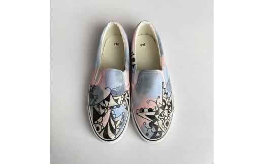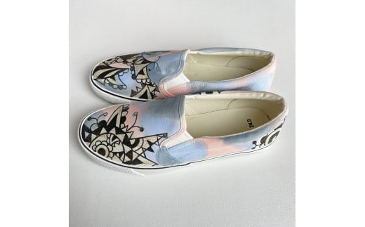 手描きスニーカー「パズワ Plus」26.5cm グラデーションベース アシンメトリー【受注制作】