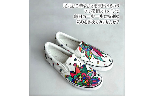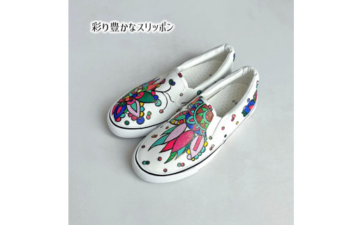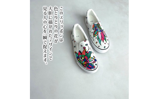 - 手描きスニーカー「ミラージュ」 スリッポン ワイズ 2E 25.0cm【受注制作】