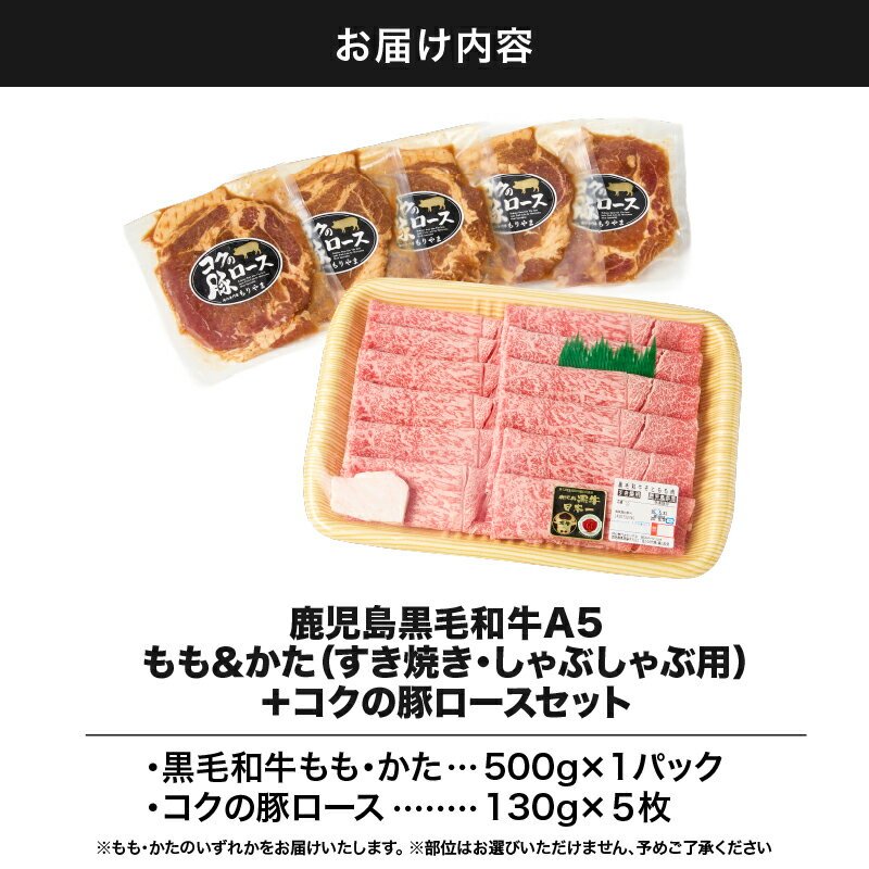 - 【ふるさと納税】鹿児島黒毛和牛 A5等級 すき焼き しゃぶしゃぶ用 500g(もも・かたいずれか)+絶品『コクの豚ロース』650g(130g×5枚)セット 牛肉 味噌漬け みそ漬け 豚肉 ロース肉 肉の専門店もりやま 鹿屋市 おすすめ ランキング プレゼント ギフト