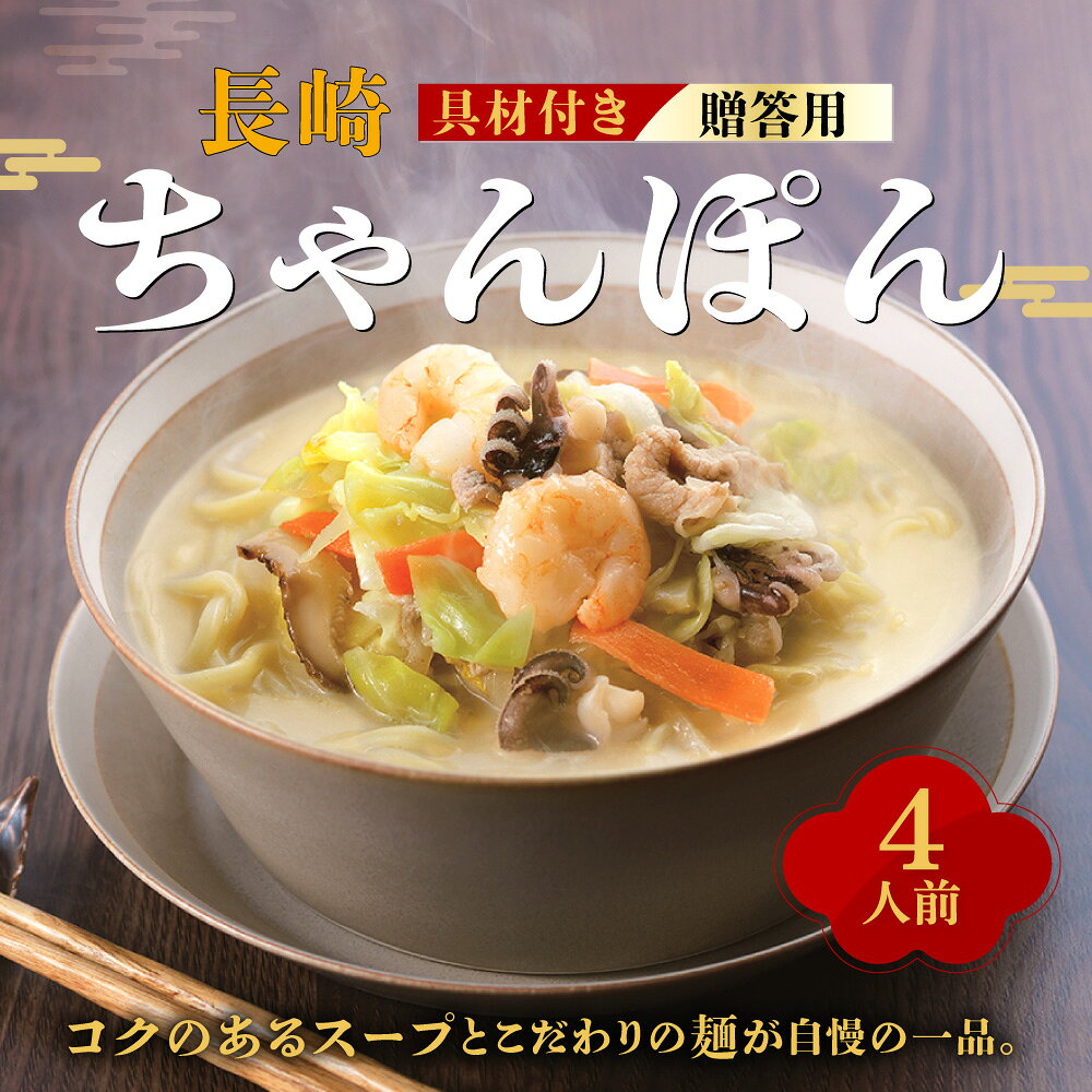 - 【ふるさと納税】【7営業日以内発送】【贈答用】具材付き 長崎 ちゃんぽん 4人前 冷凍 ちゃんぽん 麺 麺類 簡単調理 具材 具入り スープ付き 冷凍 国産 九州 長崎県 長崎市 送料無料