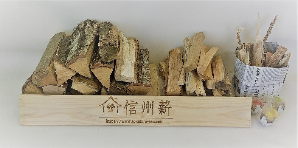 アウトドア グッズ 薪 10kg 4種 ( 焚火用25cm & 細割25cm & 焚付け約500g & 着火剤3個 ) 焚き火 スターター セット 信州薪