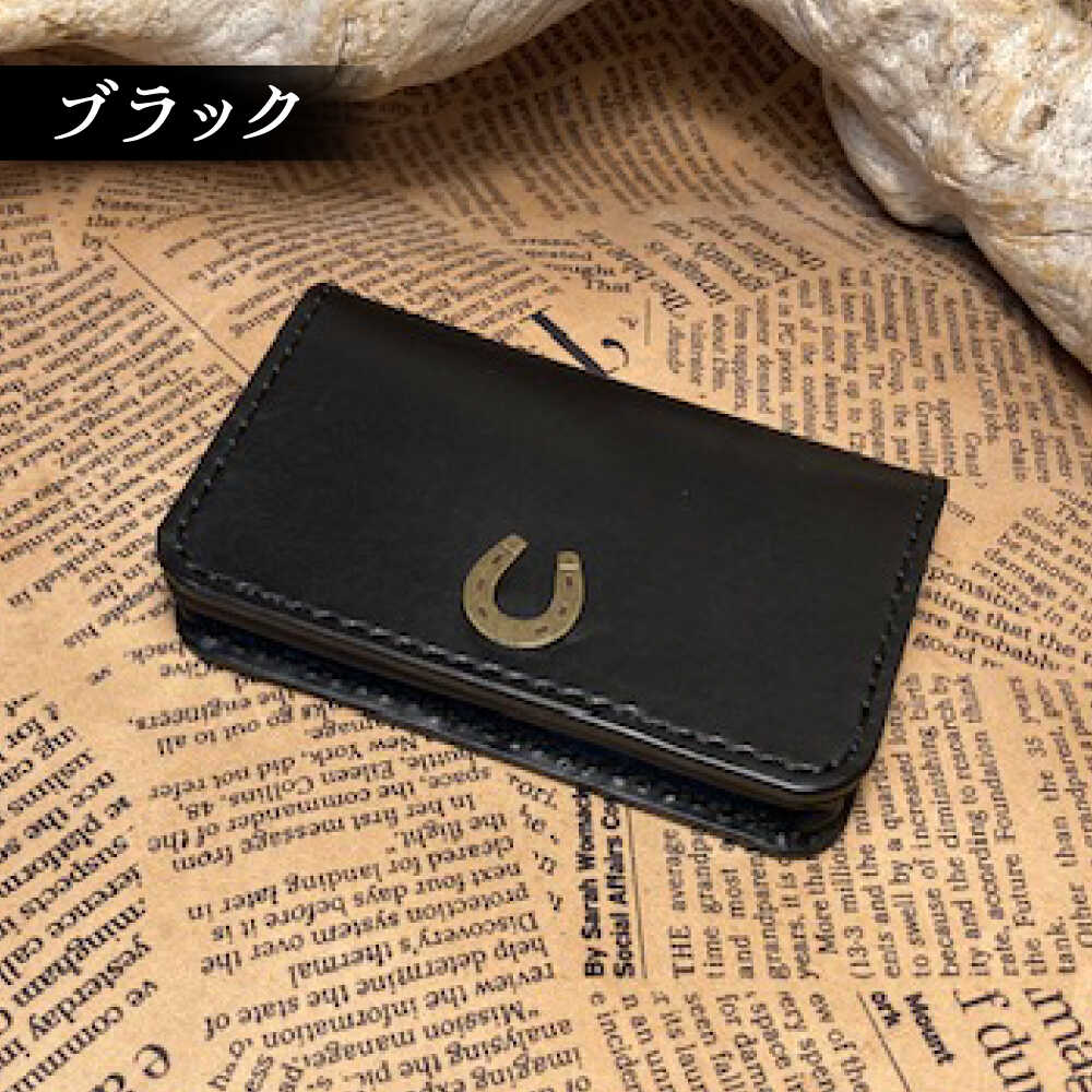 - 【ふるさと納税】【選べるカラー】蹄鉄付き 名刺入れ (マチあり) 名刺入れ カードケース / 競馬 馬 競走馬 本革 名刺入れ 革小物 ハンドメイド レザー 雑貨 日用品 / 栗東市 / 株式会社ブルズエフ[BIAU077]