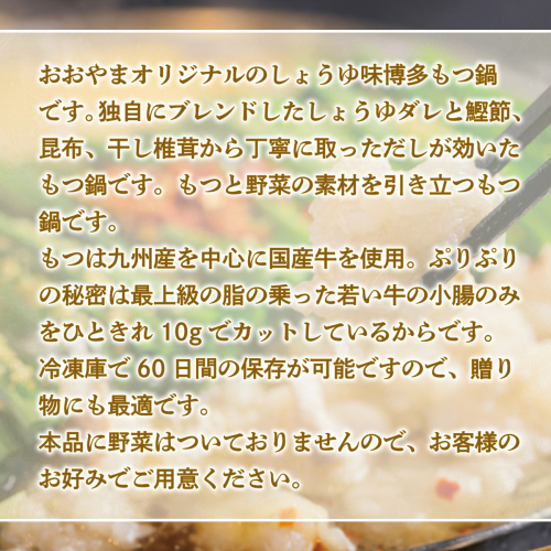 【ギフト対応可】福岡もつ専門店売上高1位 博多 もつ鍋 おおやま もつ鍋 しょうゆ味 3人前 牛肉 小腸 なべ 醤油 太宰府