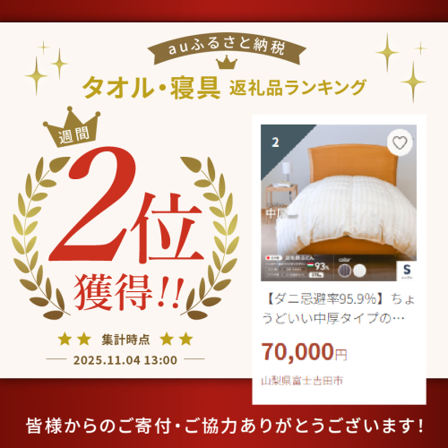 - 【ダニ忌避率95.9%】ちょうどいい中厚タイプの羽毛布団 (シングル)【ホテル仕様】