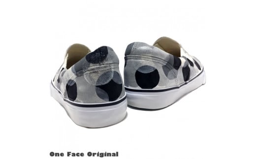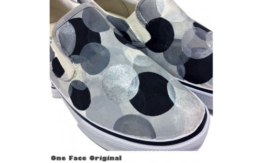 - 手描きスニーカー「Round-S」23.5cm モノクロ 水玉柄【受注制作】