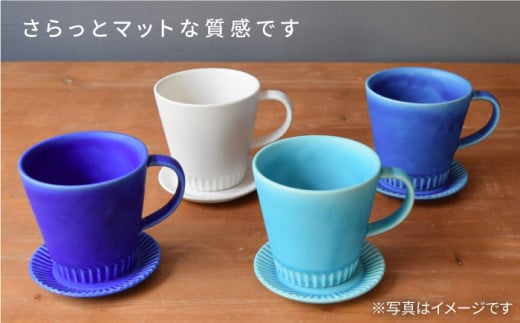 【美濃焼】Stripe マグカップ & プレート SSセット マリン×インディゴ【作山窯・SAKUZAN】【TOKI MINOYAKI返礼品】 コーヒーカップ ソーサー 小皿 [MBJ038]