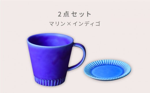 - 【美濃焼】Stripe マグカップ & プレート SSセット マリン×インディゴ【作山窯・SAKUZAN】【TOKI MINOYAKI返礼品】 コーヒーカップ ソーサー 小皿 [MBJ038]