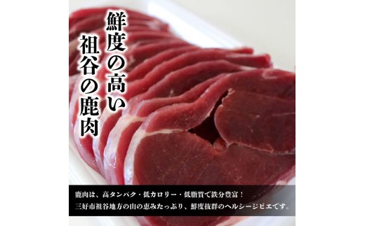 【徳島県三好市祖谷産】祖谷の地美栄 鹿 モモ スライス 500g 希少 部位 ジビエ 地美栄 厳選 鹿肉 国産 ヘルシー 低カロリー 高たんぱく 低脂質 焼肉 BBQ バーベキュー ステーキ ロースト シカ シカ肉 唐揚げ カレー シチュー 使いやすい 冷凍 赤身 みよし 徳島 三好 祖谷