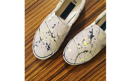 - 手描きスニーカー「Clair(クレール)」23.5cm グレーベース【受注制作】