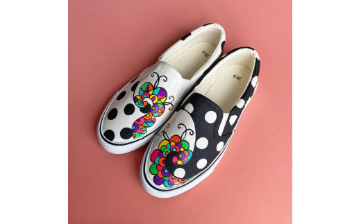 - 手描きスニーカー「ジャズ」24.0cm 水玉模様 アシンメトリー【受注制作】