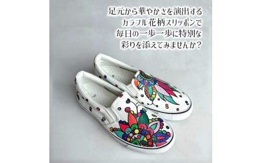 - 手描きスニーカー「ミラージュ」 スリッポン ワイズ 2E 25.5cm【受注制作】