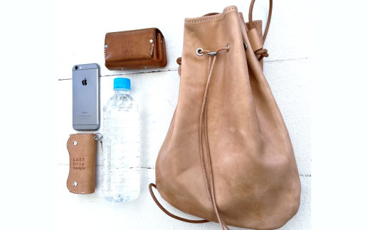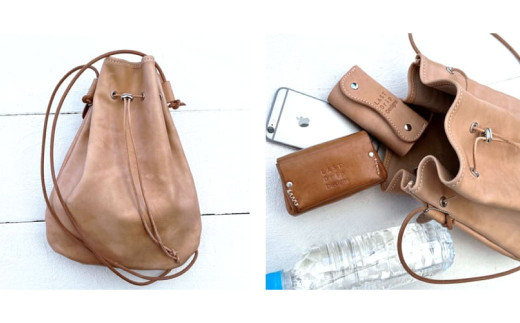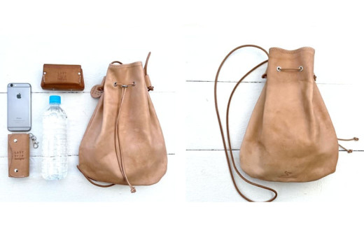 - 巾着 サコッシュ ショルダーバッグ (Lサイズ) ヌメ革 牛革 革 レザー ショルダー バッグ 鞄 カバン 革製品
