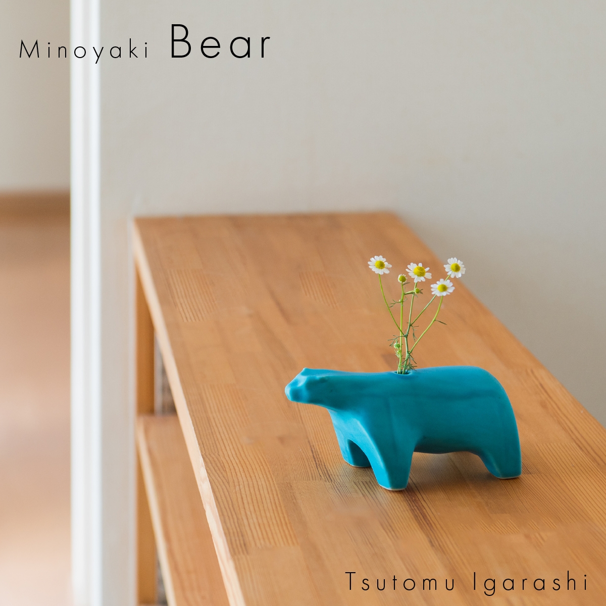 【美濃焼】 五十嵐務 くま 一輪挿し トルコブルー 瑞浪市 / JS企画 セット 陶芸作品 花瓶 インテリア [AZAZ220]
