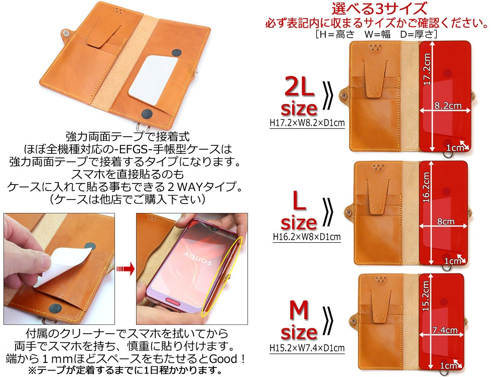 - ほぼ全機種対応 手帳型 ケース 2Lサイズ 栃木キャメル 【右開き】TPU スタンド カード入れ ベルト付き 栃木レザー 本革 リッキーズ