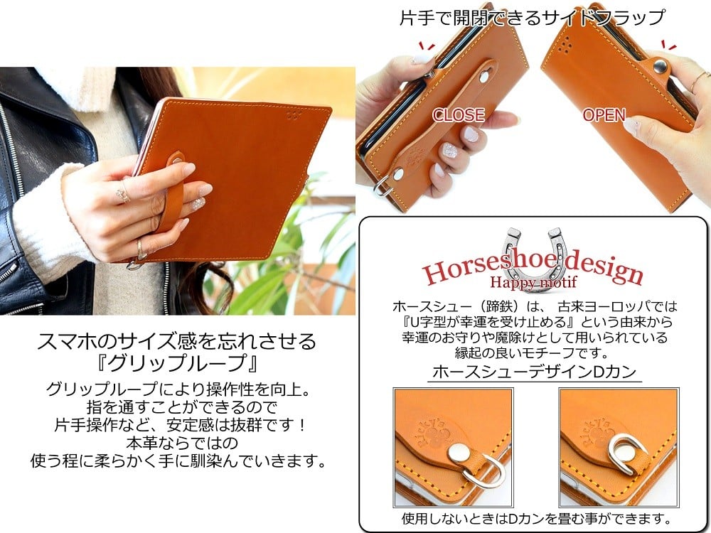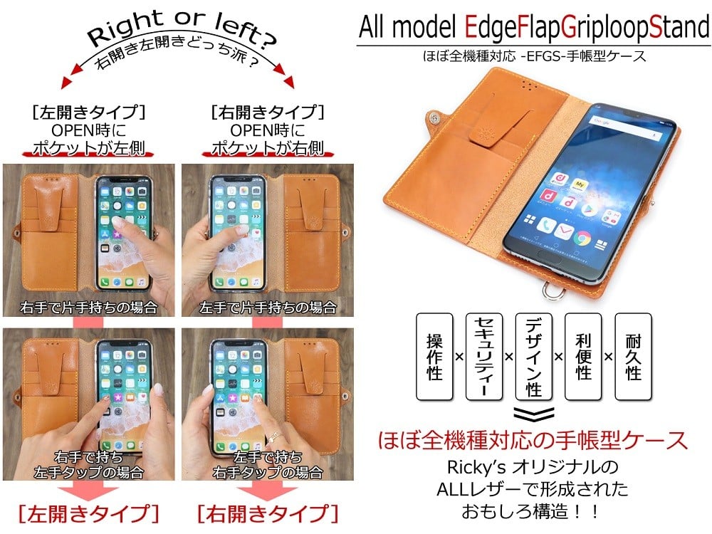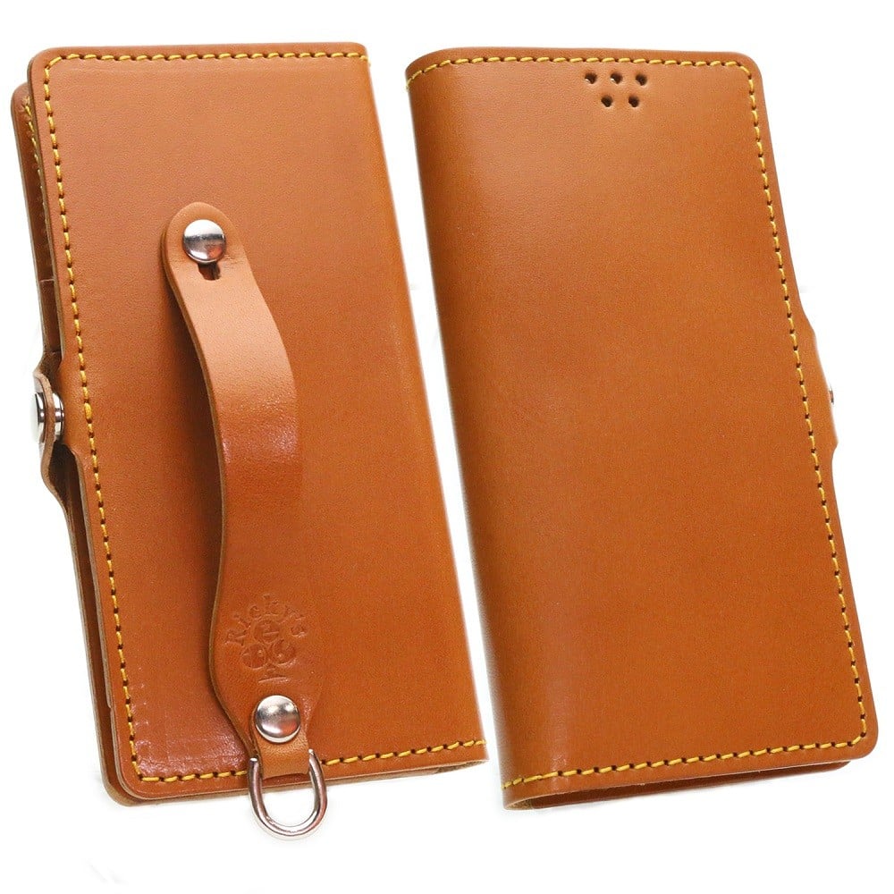 - ほぼ全機種対応 手帳型 ケース 2Lサイズ 栃木キャメル 【左開き】TPU スタンド カード入れ ベルト付き 栃木レザー 本革 リッキーズ