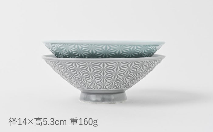 - 【波佐見焼】平碗 ペアセット 麻の葉紋様(彫り) 青白釉&グレー 【福田陶器店】 [PA378]
