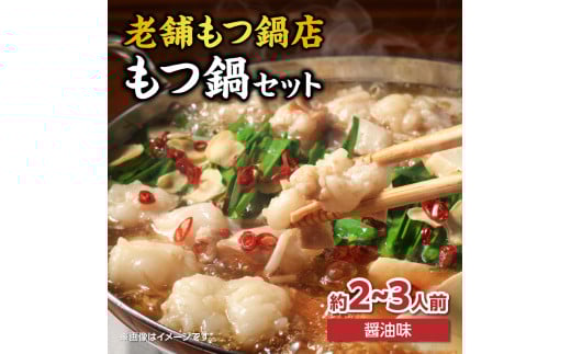 - 【味味】もつ鍋2~3人前セット(醤油味) モツ もつ ホルモン 鍋 老舗 九州産 黒毛和牛 醤油 スープ 〆付き 麺 ちゃんぽん麺 セット 冷凍配送 簡単 調理 福岡県 八女市