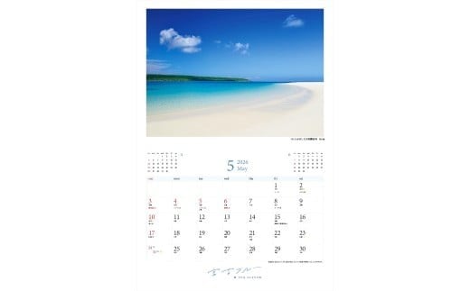 沖縄県宮古島 壁掛けカレンダー2026 A4サイズ (壁掛け時はA3)|宮古ブルー【写真家 上西重行】