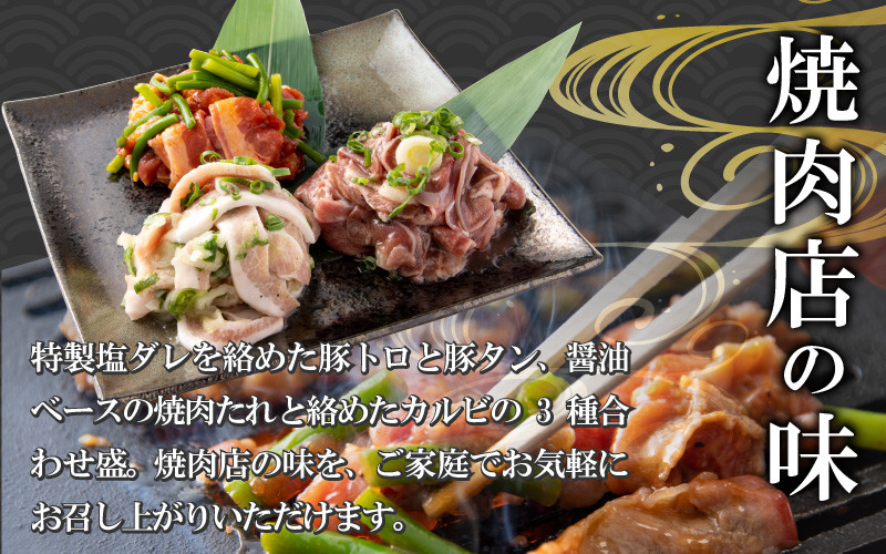 焼肉用3種盛(ネギ塩豚トロ 400g・ネギ塩豚タン 400g・味付け牛カルビ 350g)×3セット [B-037002]